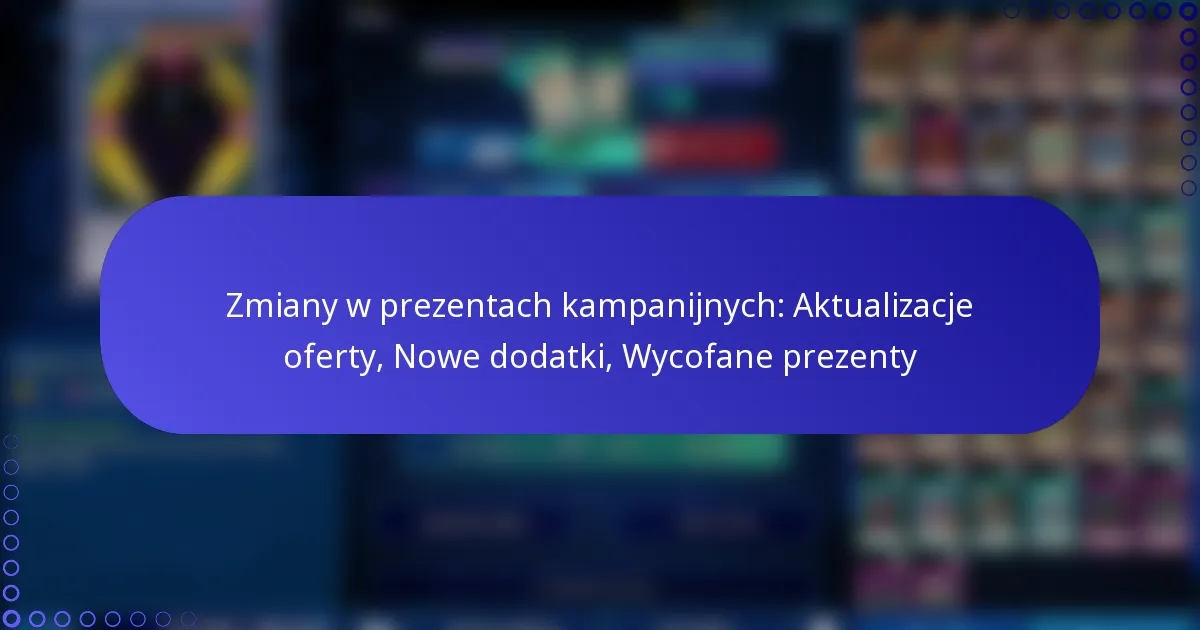 Ostatnie aktualizacje prezentów kampanijnych w Yu-Gi-Oh! Duel Links obejmują nowe dodatki, modyfikacje istniejących ofert oraz wycofane prezenty, które nie będą już dostępne. Zmiany te mają na celu poprawę doświadczeń graczy i zaangażowania, oferując bardziej wartościowe nagrody oraz upraszczając proces wyboru prezentów.